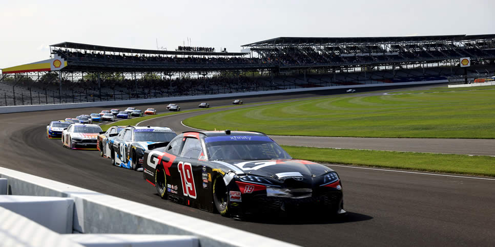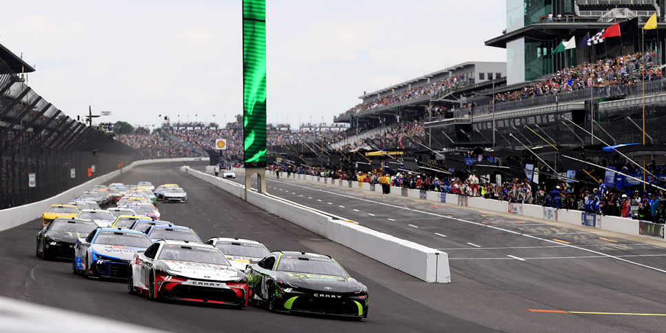 Denny Hamlin, who led 21 laps earned the first stage win – his sixth stage victory of the season and the first ever for the veteran at Indy. He finished 32nd after being involved in a multi-car accident during the first overtime restart and now is fourth in the championship standings, 43 points behind Larson.