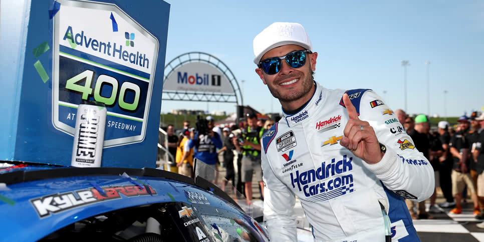 On Sunday, after putting his No. 5 Hendrick Motorsports Chevrolet on the pole on Saturday, Larson defended his victory in far more decisive fashion, leading 221 of 267 laps in winning the AdventHealth 400 at the 1.5-mile track.