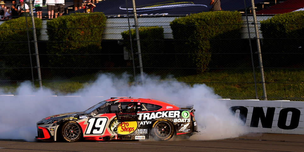 Chase Briscoe has earned a NASCAR Cup Series season-best four pole positions and led laps in eight races in his first season driving the famous No. 19 Joe Gibbs Racing Toyota, and finally – finally – on Sunday afternoon that hard work translated into his first trophy, edging his JGR teammate Denny Hamlin in The Great American Getaway 400 presented by VisitPA.com at Pocono (Pa.) Raceway.