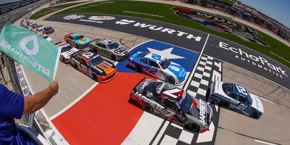 John Hunter Nemechek overcame a late race pit penalty to rally through the field and take his second career NASCAR Xfinity Series victory Saturday in the Andy's Frozen Custard 335 at Texas Motor Speedway – the first of three Playoff events that will set the Championship 4 field for the season finale.